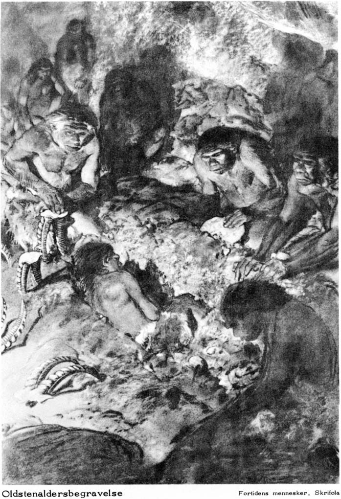 Billedet viser "Hope Mausoleum" i New Orleans. Bygningen er i 2 etager hver med 4 rækker gravnicher oven på hinanden. Indvendig er væggene beklædt med marmor, og for enden af alle gange er der smykket med glasmosaikker.