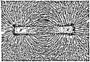 Sådan ordner jernfilspånerne sig på et stykke papir omkring en stangmagnet. Man skal knipse et par gange til papiret.