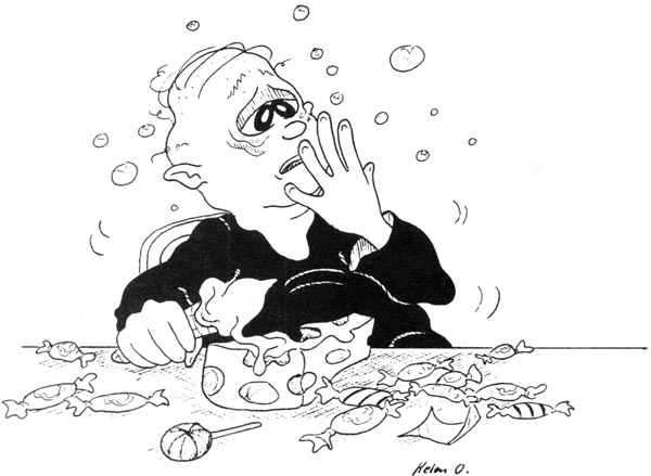 Det kan være hunger efter oste, søde sager eller andre ting, som man ikke kan tåle, som plager os, og som vi alligevel ikke kan modstå. Af og til udsulter vi dem og klarer os alligevel udmærket, indtil vi igen falder for "en lille smule" i den tro, at lidt sikkert ingen skade gør: "kun denne ene gang". Men straks inkarnerer passende væsener, og i begyndelsen har vi det alle ganske godt. Men snart er cirkuset igen i gang, begæret er vakt og fører i værste fald til orgier med deraf følgende fedme, hovedpine, ulyst og anger. For mit eget vedkommende er det sådan, at ost giver mig migræne, søde sager overvægt, så jeg stræber efter at afstå fra disse "livets goder".