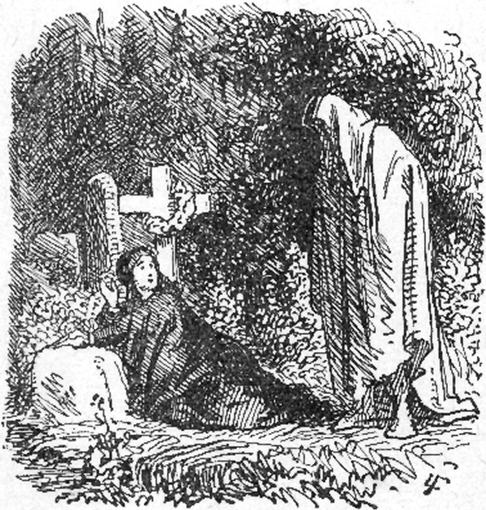Imidlertid er moderen i "Barnet i graven" foreløbig utrøstelig i sin sorg og fortvivlelse, og en nat, da alle i huset sover, lister hun sig ud og om på kirkegården og hen til sit barns grav: