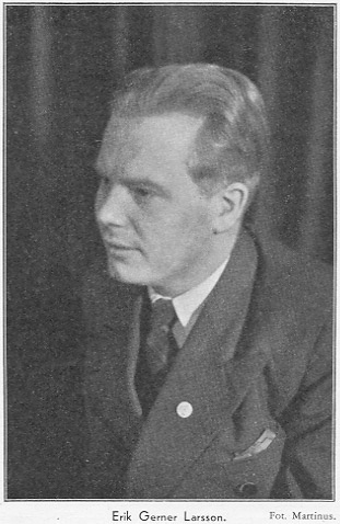 Da Erik Gerner Larsson den 15. Marts netop passerer denne Milepæl, vil jeg gerne glæde de mange Venner, han har indenfor Sagen, med her at udtrykke et Par Ord i den Anledning. Dette er mig saa meget desto mere kært, eftersom han nu i en Aarrække, foruden gennem Artikler og Skrifter, gennem ca. 400 Foredrag udelukkende har talt om mig og mit Arbejde, uden at jeg officielt har haft Lejlighed til at udtrykke noget om ham.