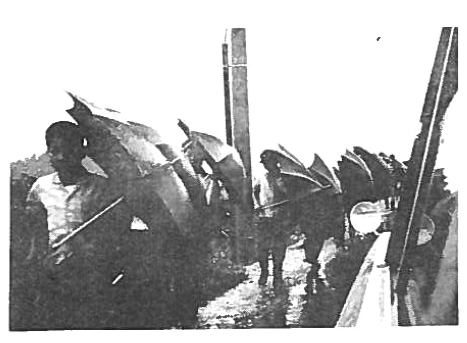 Som tidligere nævnt meldes de japanske tyfoners ankomst af et skyllende regnvejr og en pibende storm. Det var netop tilfældet i dag, så det var på forhånd tvivlsomt, om turen kunne have været gennemført, men det lykkedes, og besøget ved et af arnestederne for den højt udviklede smedekunst var en oplevelse helt for sig selv.