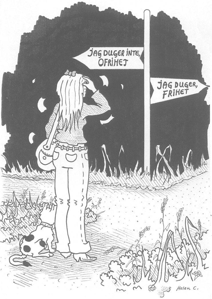 Jeg har frihed til at være præcis, som jeg er. Jeg kan, som fuglen på Helens tegning, strække mine vinger og flyve ud i verden i forvisning om, at jeg er god nok, præcis som jeg er. Det er dog ikke nogen let proces. Den tager tid. Jeg kommer til at vende tilbage til buret mange gange. De negative sider hos mig selv kan være svære at forsone sig med. Jeg kan fx synes, at mine forskellige former for angst er ualmindelig barnlige. Der er dog en årsag bag enhver angstfølelse. Jeg har gjort det så godt, jeg kunne, i enhver svær situation. Alt har efterladt sig sår. Det er en stor gave, jeg giver mig selv, hvis jeg giver mig frihed til at være mig selv – på godt og ondt.