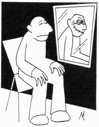 Jeg har i de sidste seks år kendt til Martinus analyser og forsøgt at efterleve dem, så godt jeg kunne, og ser nu i livets spejl, at det sted, hvor jeg troede at befinde mig, ligger milevidt foran mig – det kan være et helt chok at opdage – det er i de områder, hvor jeg indtil da havde kunnet give omgivelserne skylden for mine dårlige oplevelser.