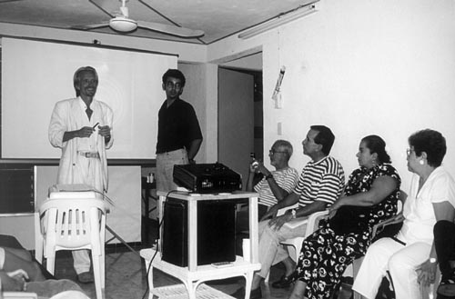 Stefan Perneborg forklarer på engelsk, og Ernesto oversætter til spansk ved undervisning i Mérida, Mexico.