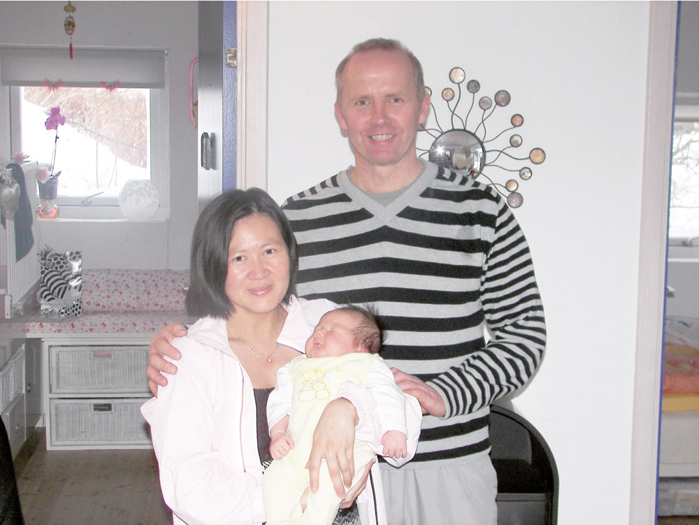 Xuan og Flemming Nielsen med nyfødt datter, feb. 2010. Foto Jan Marsfeldt