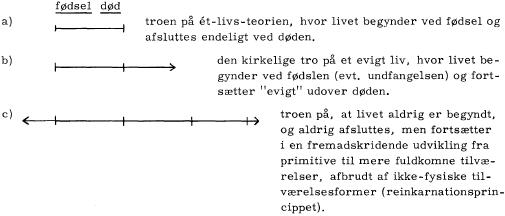 Man kan prøve at nærme sig disse problemer rent neutralt og undersøge de gængse forestillinger på dette område. Men først må man gøre sig klart, at alle forestillinger på dette felt er tro, indtil man eventuelt har virkelig viden. Enten man derfor har en bestemt religiøs opfattelse i denne sag, eller man tror, at livet har en endelig afslutning med døden, enten man er videnskabsmand eller lægmand, vil ens forestillinger herom være mere eller mindre velbegrundet tro. Og den omstændighed, at nogle ikke tager stilling for eller imod spørgsmålet om evigt liv, giver ikke disse nogen autoritet til at kritisere andres forestillinger i dette spørgsmål, ligesom de i realiteten samtidig udelukker sig fra stillingtagen i spørgsmålet om medlidenhedsdrab. Spørgsmålet om hvad der sker efter dødsprocessen er foreløbig en trossag, og man kan nævne tre former for tro i denne sag, som kan ledsages af en skitse: