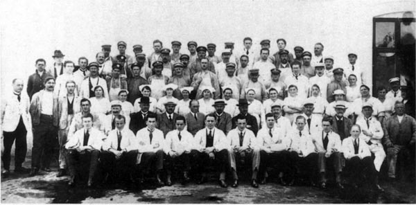 Employees at Enigheden Dairy, 1922. Martinus is the third from the left in the front row.